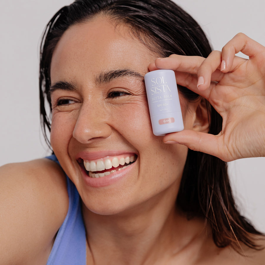 Add your BUTTA BALM™ SPF 50+ Lip + Cheek Tint to lips and cheeks to top up protection and enhance your natural glow.